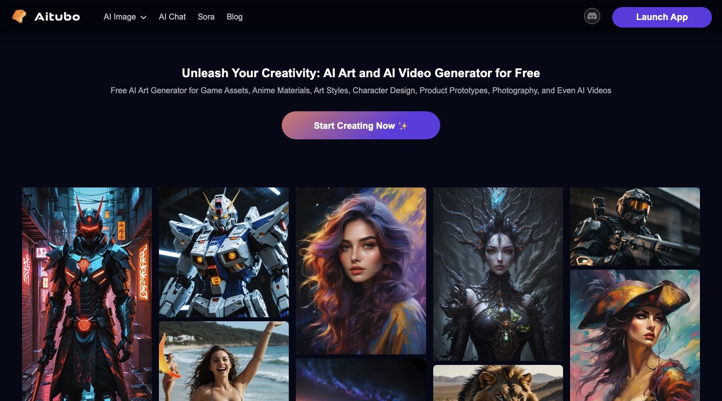 • 产品简介: Aitubo.ai是一个免费的AI艺术生成器网站,允许用户创建各种图像、游戏素材、动漫素材、艺术风格、角色设计、产品原型、摄影作品,甚至AI视频。