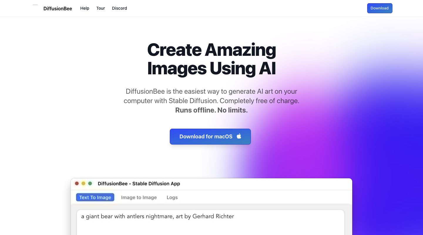 • 产品简介: DiffusionBee 是使用 Stable Diffusion 在您的计算机上生成 AI 艺术的最简单方法。它提供了先进的文本转图像生成、图像修改、修复、放大等工具,完全免费,脱机运行。没有限制。